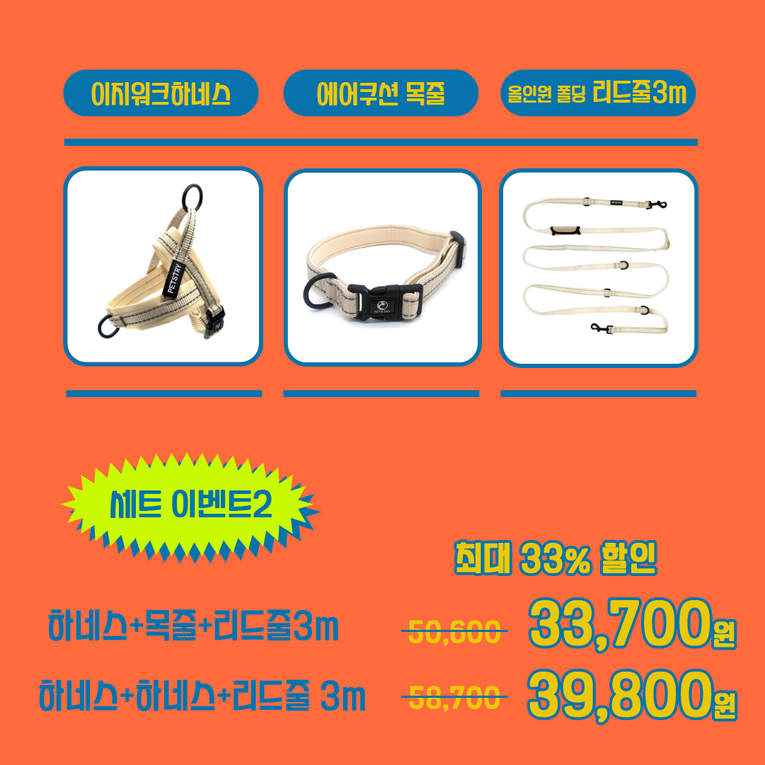 (SET상품) 하네스 + 하네스(or목줄) + 리드줄 (3m)